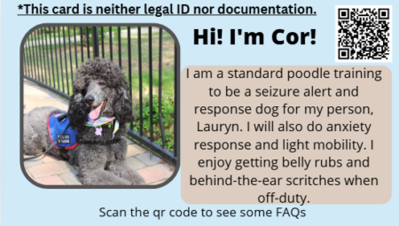 - QR code links to a service dog FAQ for deeper education.